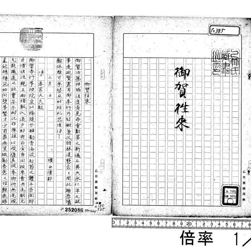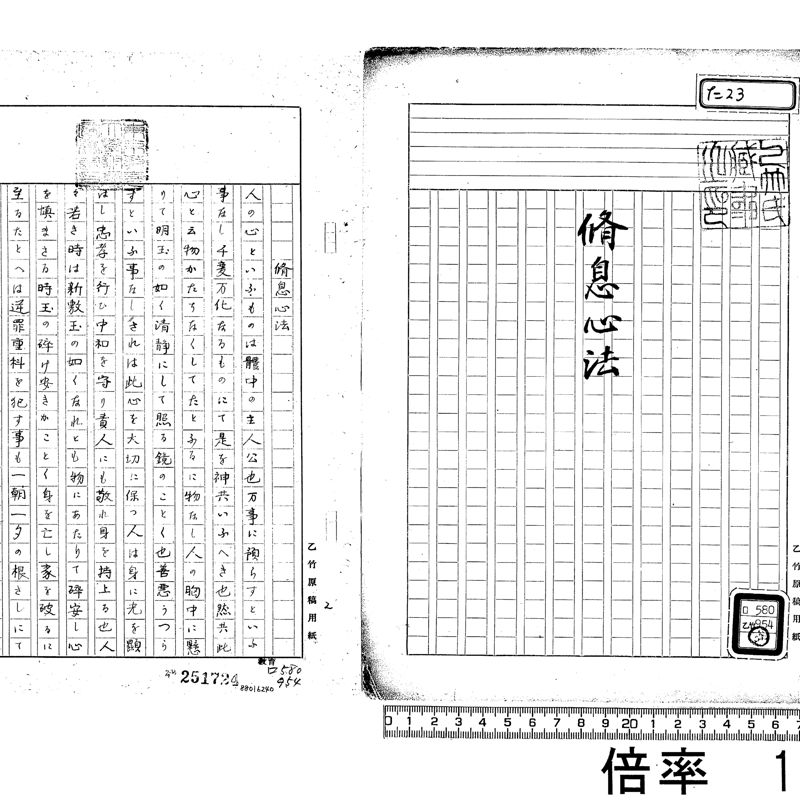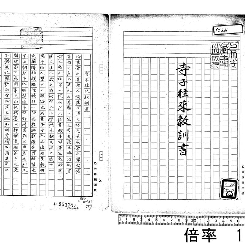 en A collection assembled from the previous collection of 1,457 books by Tokyo University of Literature and Science Professor Ototake Iwazo (education). This collection consists of materials acquired as references by Professor Ototake Iwazo for his work日本庶民教育史/Nihon Shomin Kyoikushi, and includes materials related to the history of education and texts for girls, mainly in the form of oraimono (textbooks written in the style of a correspondence). In May 1955 Professor Karasawa Tomitaro published the乙竹文庫目録/Ototake Bunko Mokuroku as a catalog of this collection.