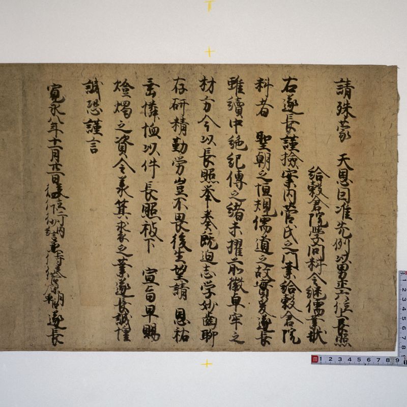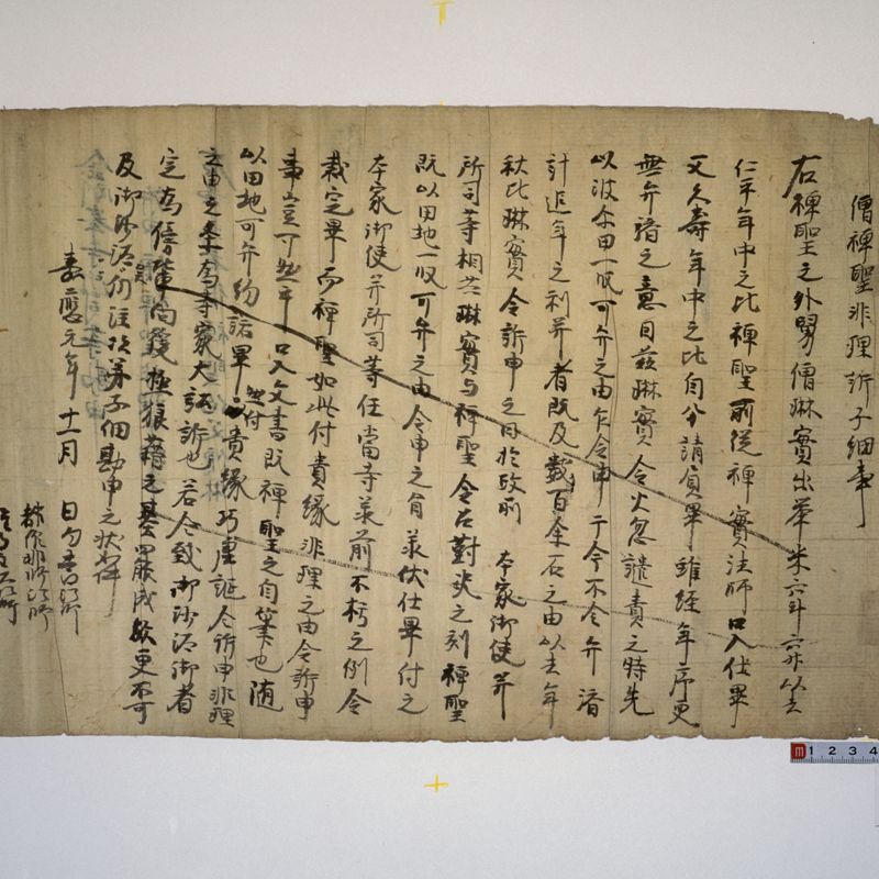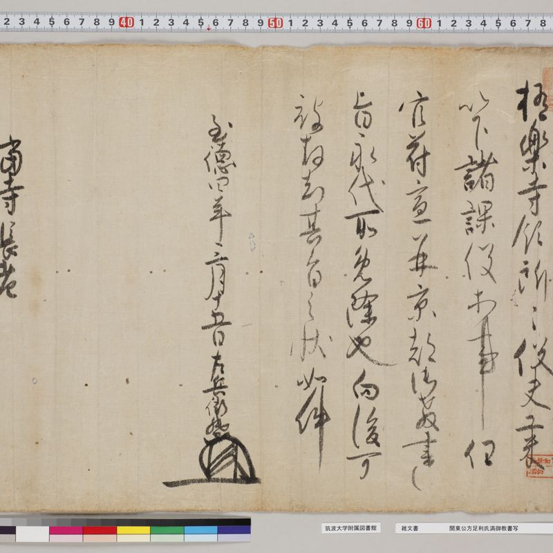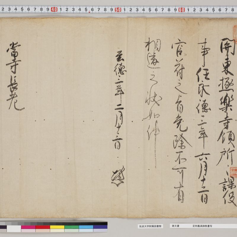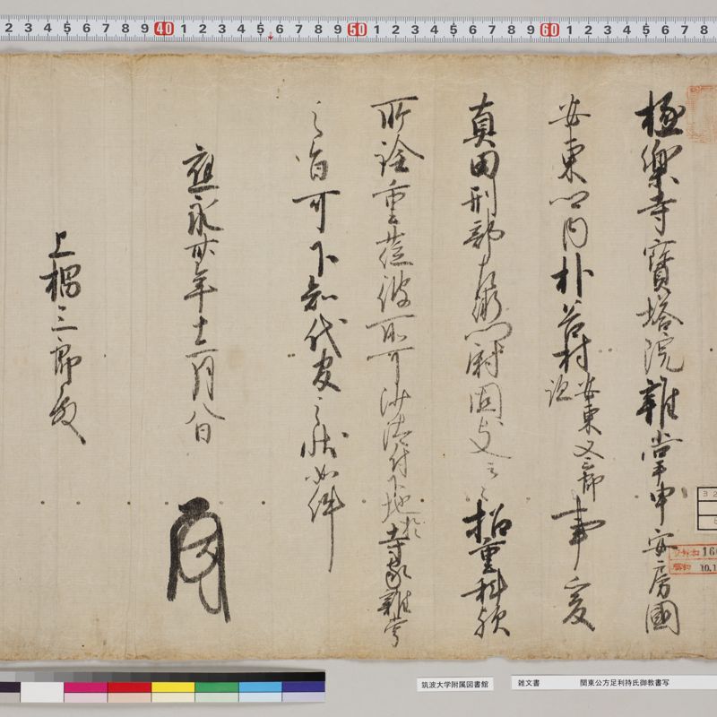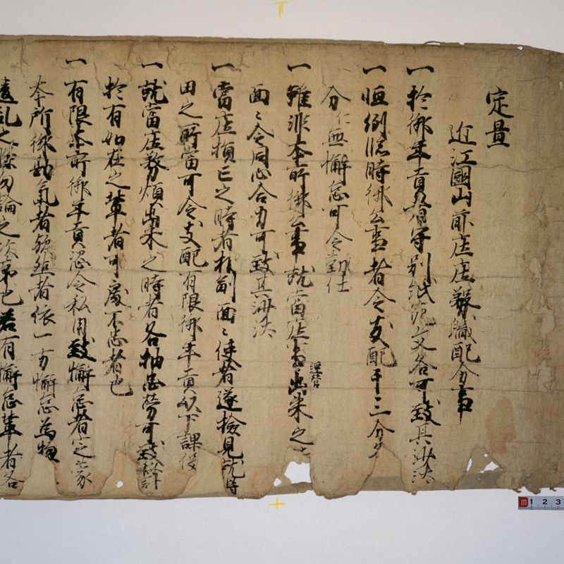 Documents from shrines and temples in Kyoto, such as Ichijoin, To-ji, Kiyomizu-dera Jojuin, Tada Shrine, and Gion Hojuin. Except for the items purchased after the war, at the same time as the documentation related to the Kitano Shrine, most of the materials have been acquired one-by-one.
